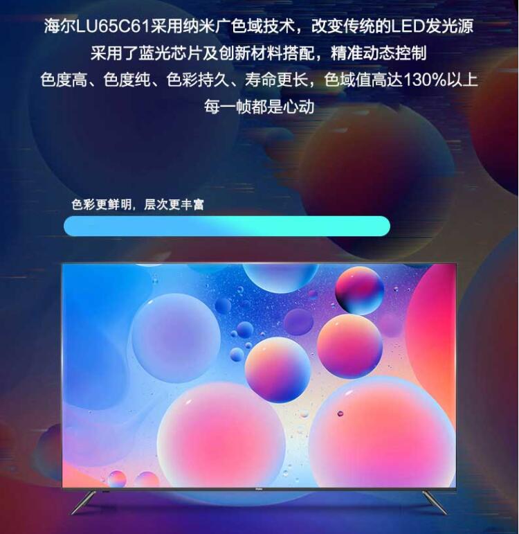 Haier/海爾 LU65C61 65英寸全面屏4K超高清智能網(wǎng)絡(luò )液晶電視機