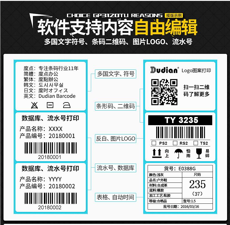 佳博GP3120TU熱敏條碼打印機 不干膠標簽機服裝吊牌價(jià)格貼紙 超市收銀奶茶手機藍牙二維碼商食品面包月餅倉庫